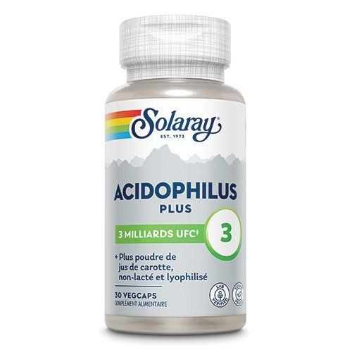 Ce produit contient plus de 3 milliards de micro-organismes vivants par gélule. Il est non-lacté et Lyophilisé. Chaque capsule contient plus de trois milliards de L. acidophilus, L. bulgaricus, et S. thermophilus, sur une base de poudre de jus de carotte. Ces bactéries « amies » sont indispensables pour l’entretien de la flore digestive. Cette formule contient à la fois pro et pré-biotiques.